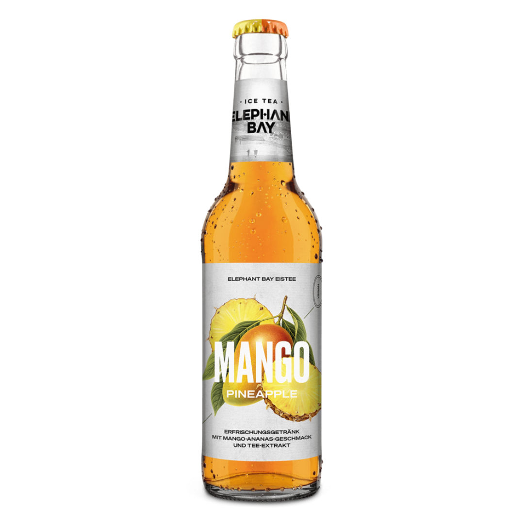 Zutaten: Wasser, Zucker, Mangosaft aus Mangosaftkonzentrat (0,5%), Ananassaft aus Ananassaftkonzentrat (0,5%), Tee-Extrakt, Säuerungsmittel Citronensäure, Aroma, Antioxidationsmittel Ascorbinsäure.