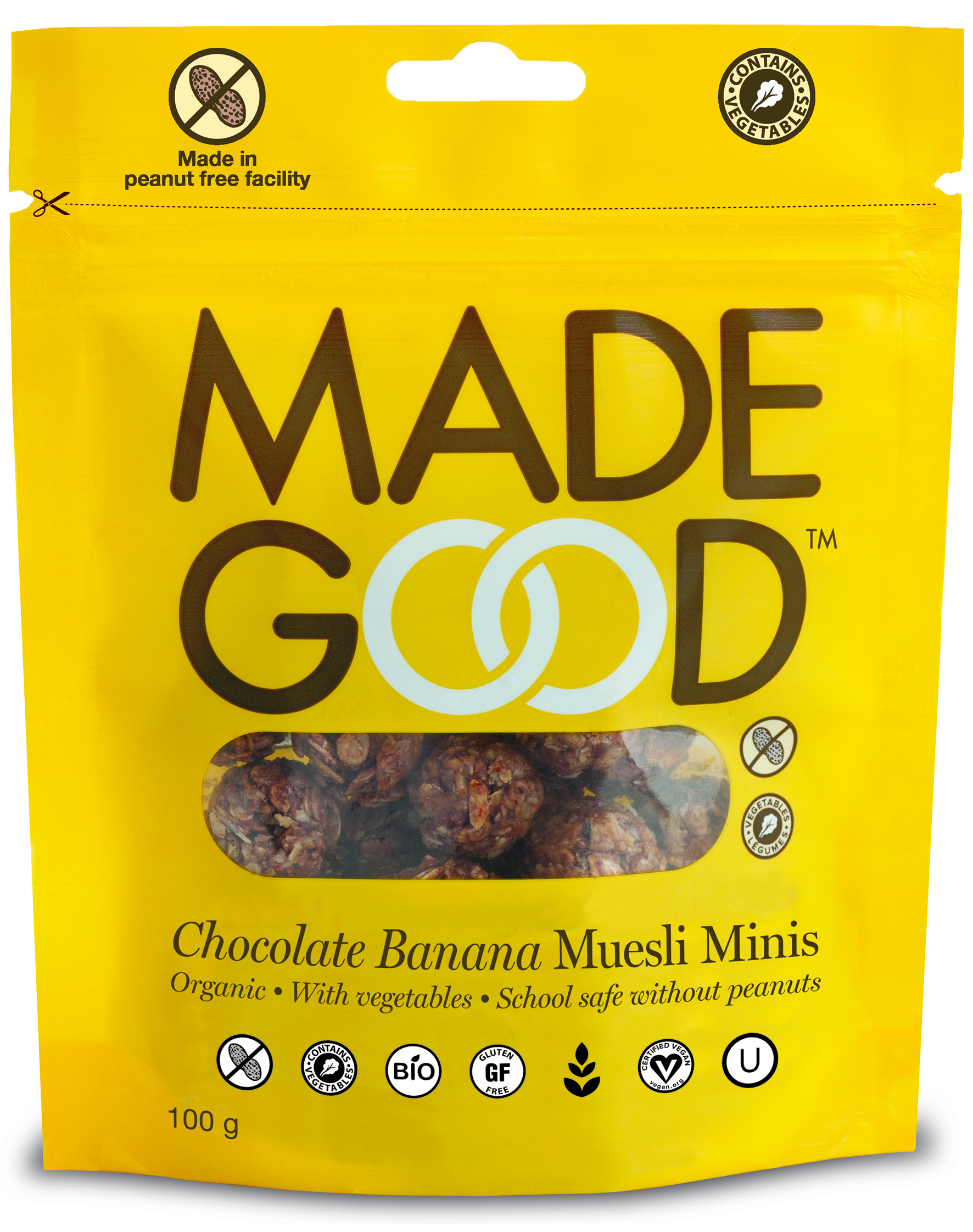 Müsliriegel neu interpretiert – rund statt in Riegelform. Eine köstliche Kombination aus glutenfreien Haferflocken, der Süße aus Bananen und leckeren Schokostückchen. Perfekt geeignet als Müsli-Topping oder als Snack für unterwegs, besonders für Kinder. Mit patentierter Gemüsemischung.
