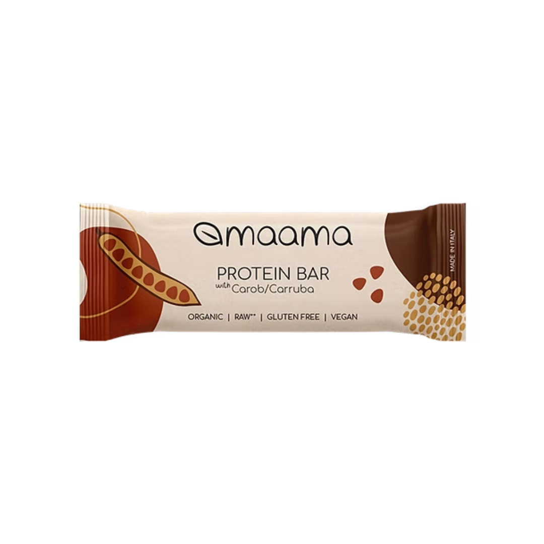 Der Maama Carob Proteinriegel vereint die edlen Proteine der Kürbiskerne mit der natürlichen Süße von Datteln, Feigen, Thompson-Trauben und Johannisbrot.